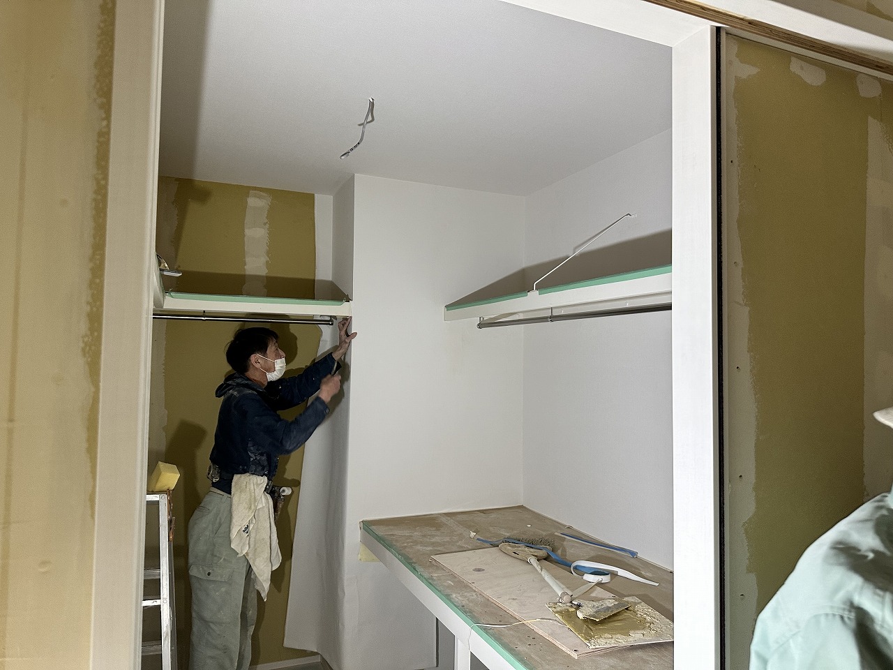こんにちは、えすりんママです。昨日は久しぶりに雪が降って寒かったですね。宇部市H様邸はクロス工事をしています。雪のように白いクロスです♪