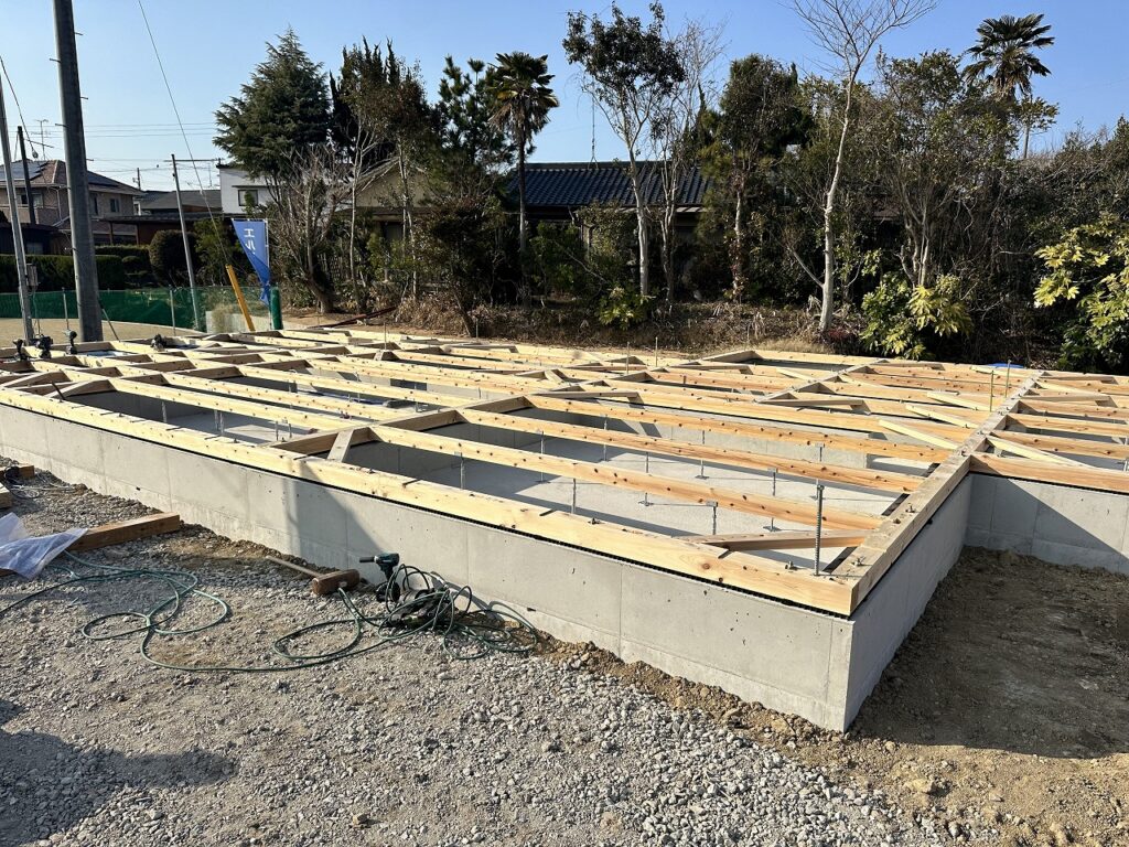 こんにちは、てぃーたです。宇部市Y様邸は土台敷きを行いました。立ち上がり基礎の上に土台を乗せます。
