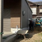 ボードで壁をふさぐ工事をしています。