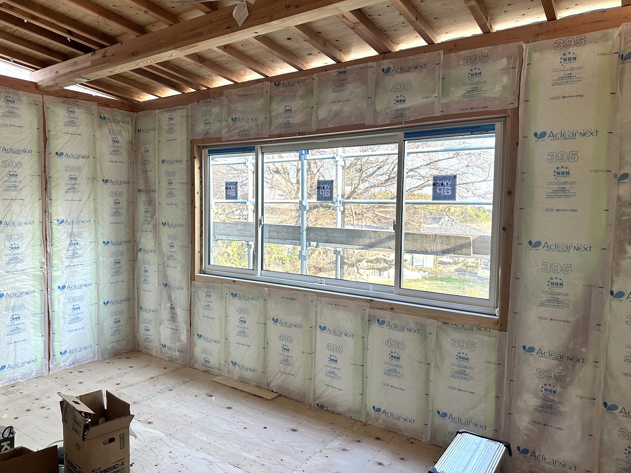 宇部市H様邸は外壁面にピシッと断熱材を充填しました。丁寧な仕事で大工さんの意気込みが伝わってきます。えーるパパでした。