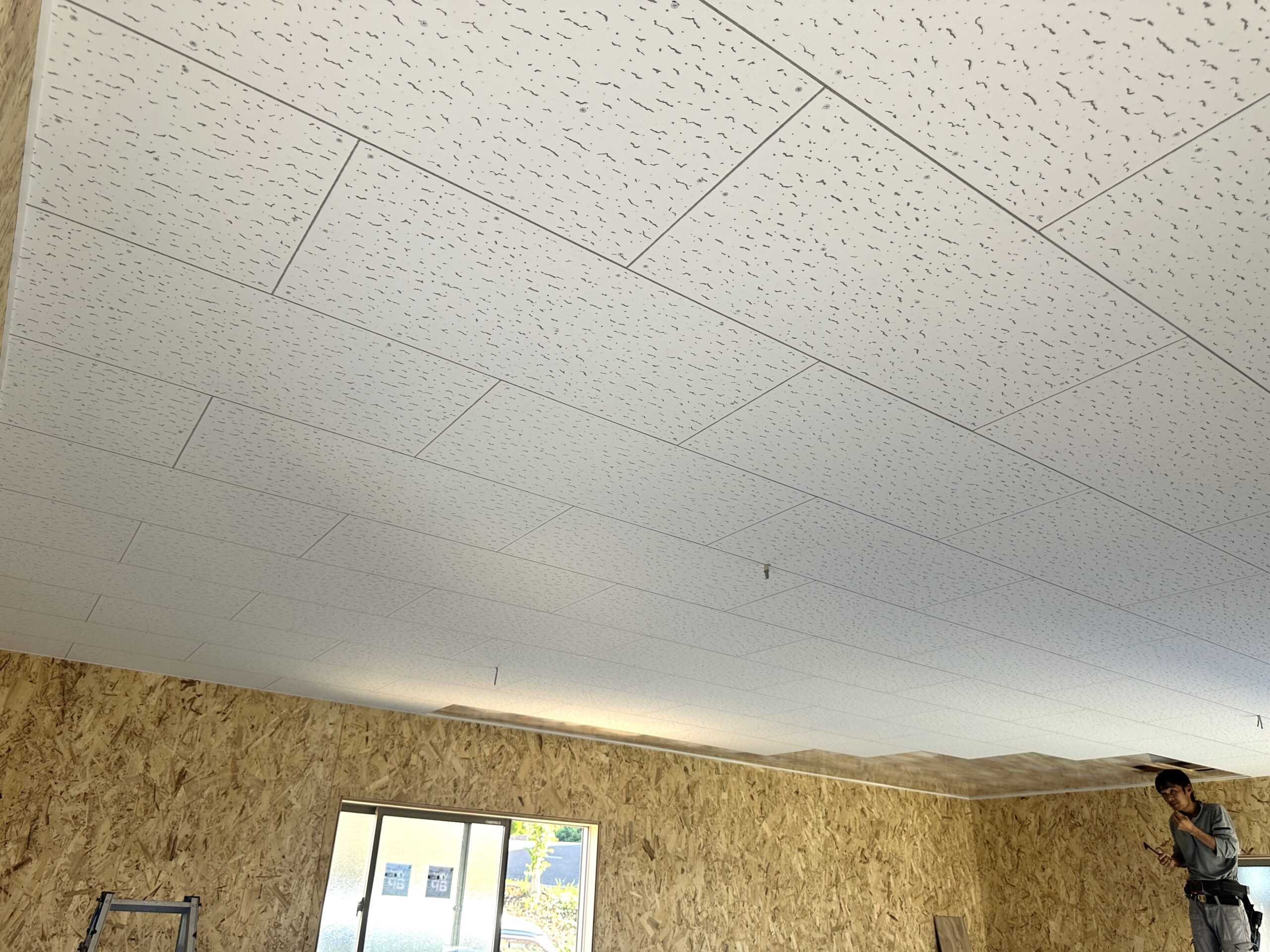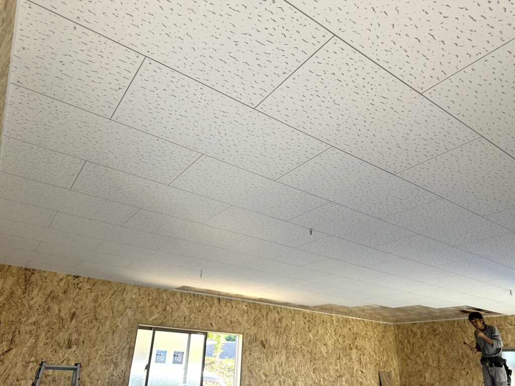 10月 09 2025 物置造作 宇部市S社様の物置はジプトーンという天井材を張っています。半分ずつずらしても目地が等間隔に揃って、とてもキレイです🌟造作工事の終わりが見えてきました。あと一息です✊ 投稿者: 前田隆翔 器具付け 上棟