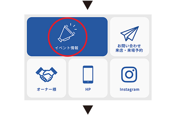 友だち追加後、メニューを開いてイベント情報をタップしてください。