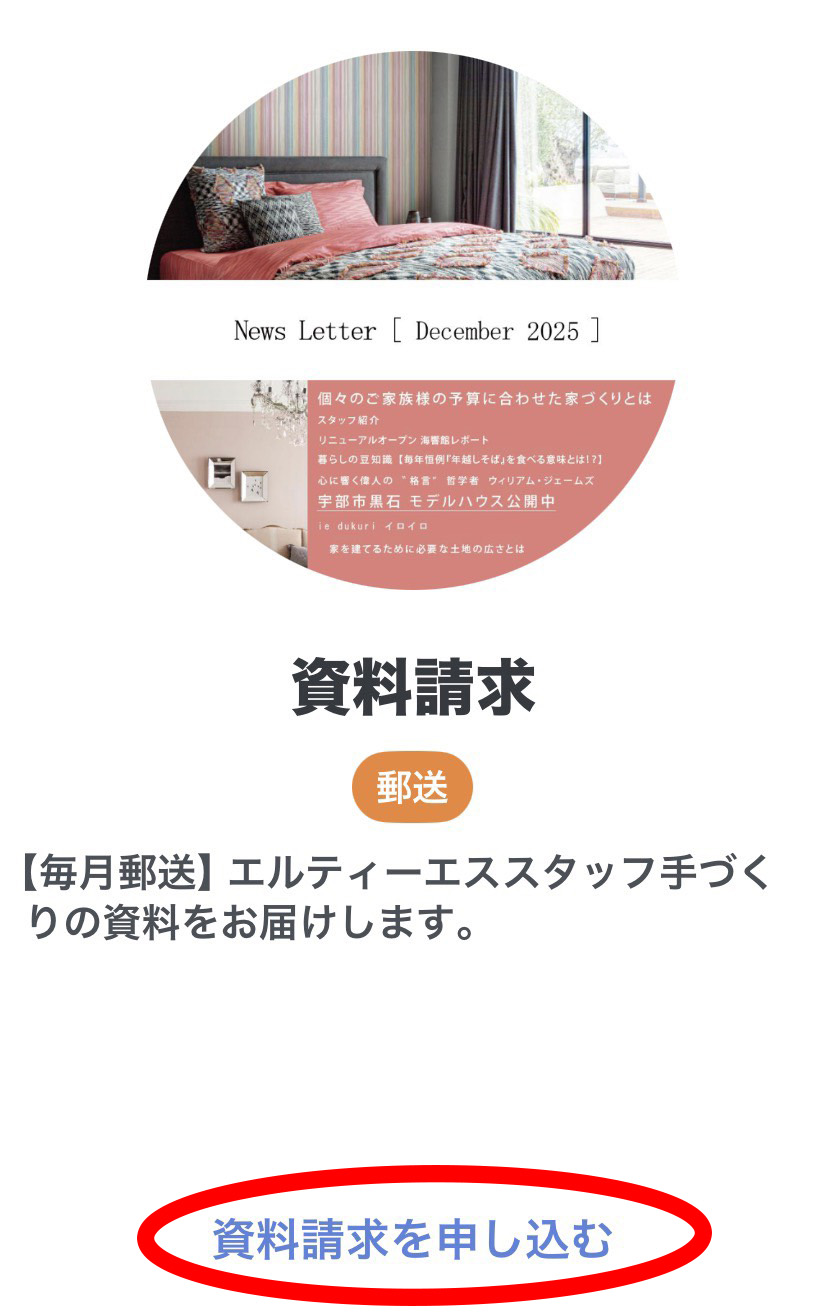 \ 家づくりに役立つ情報や見学会等のイベント情報を郵送でお届け致します /