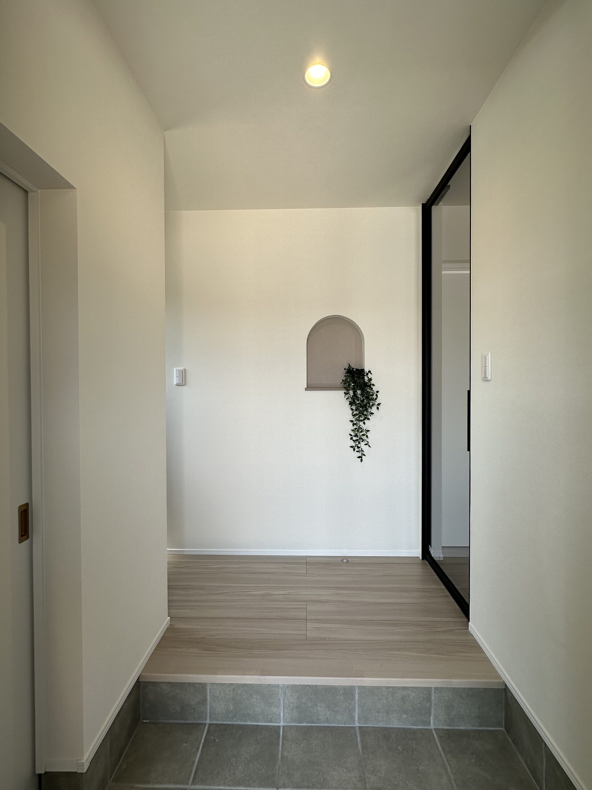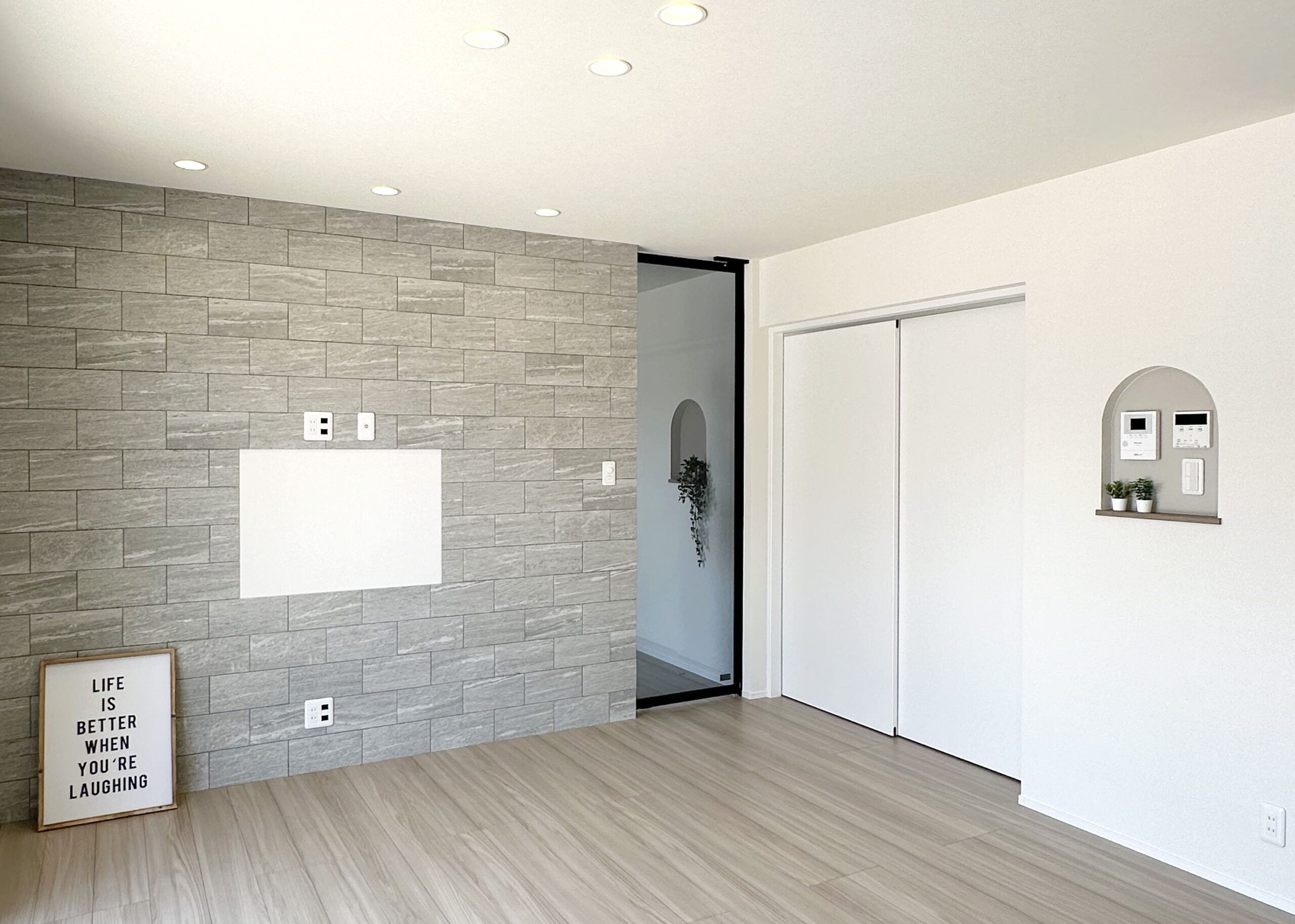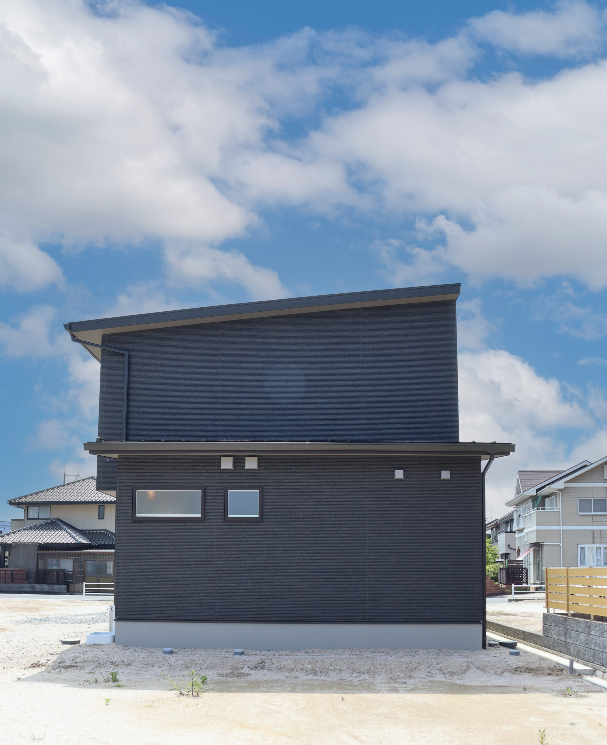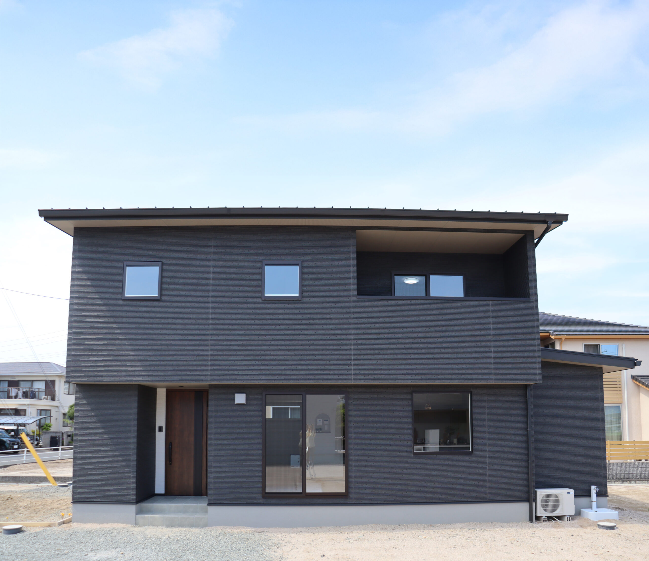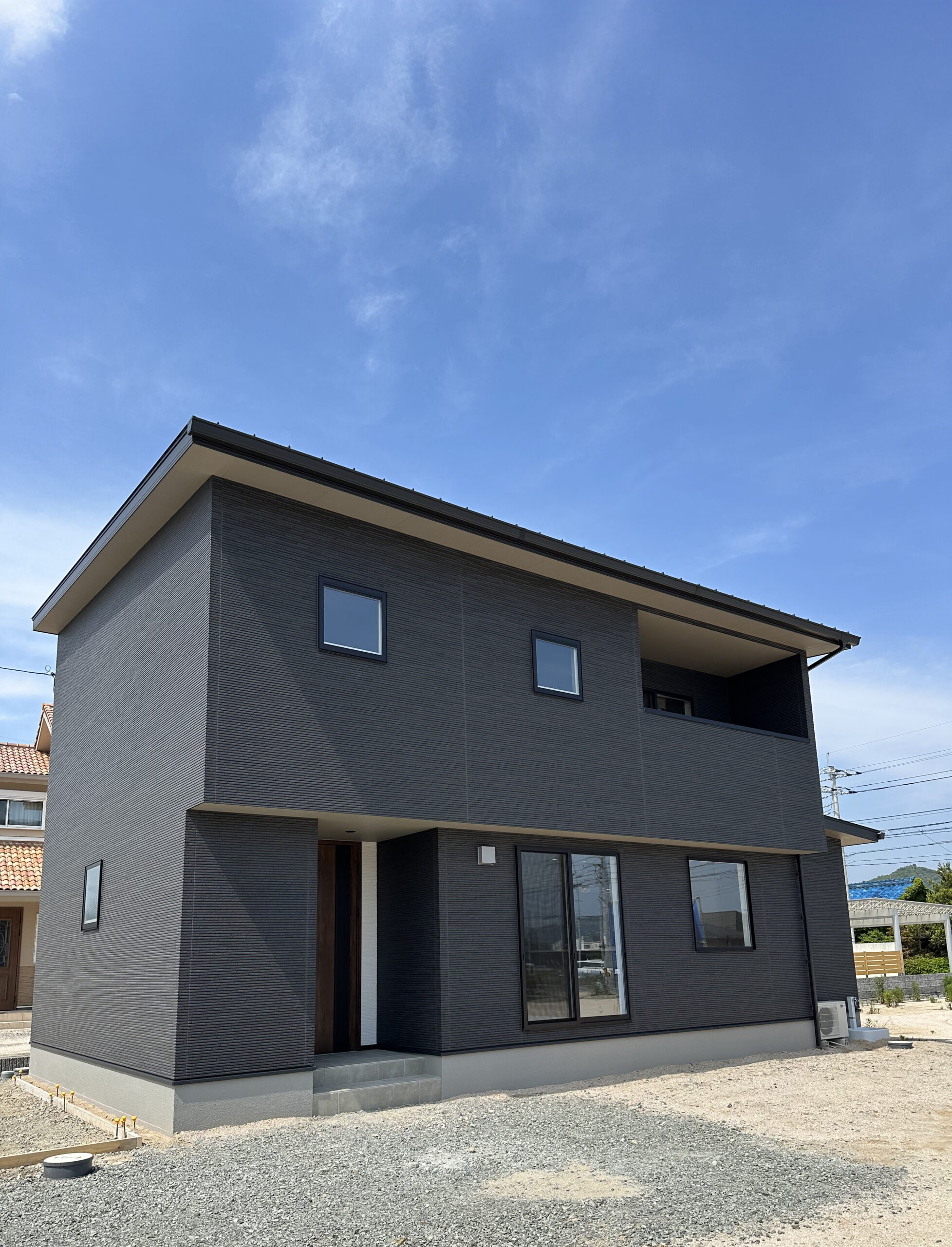[新築住宅]防府市 跳ね出しの外観とタイルの内装壁が魅せる家