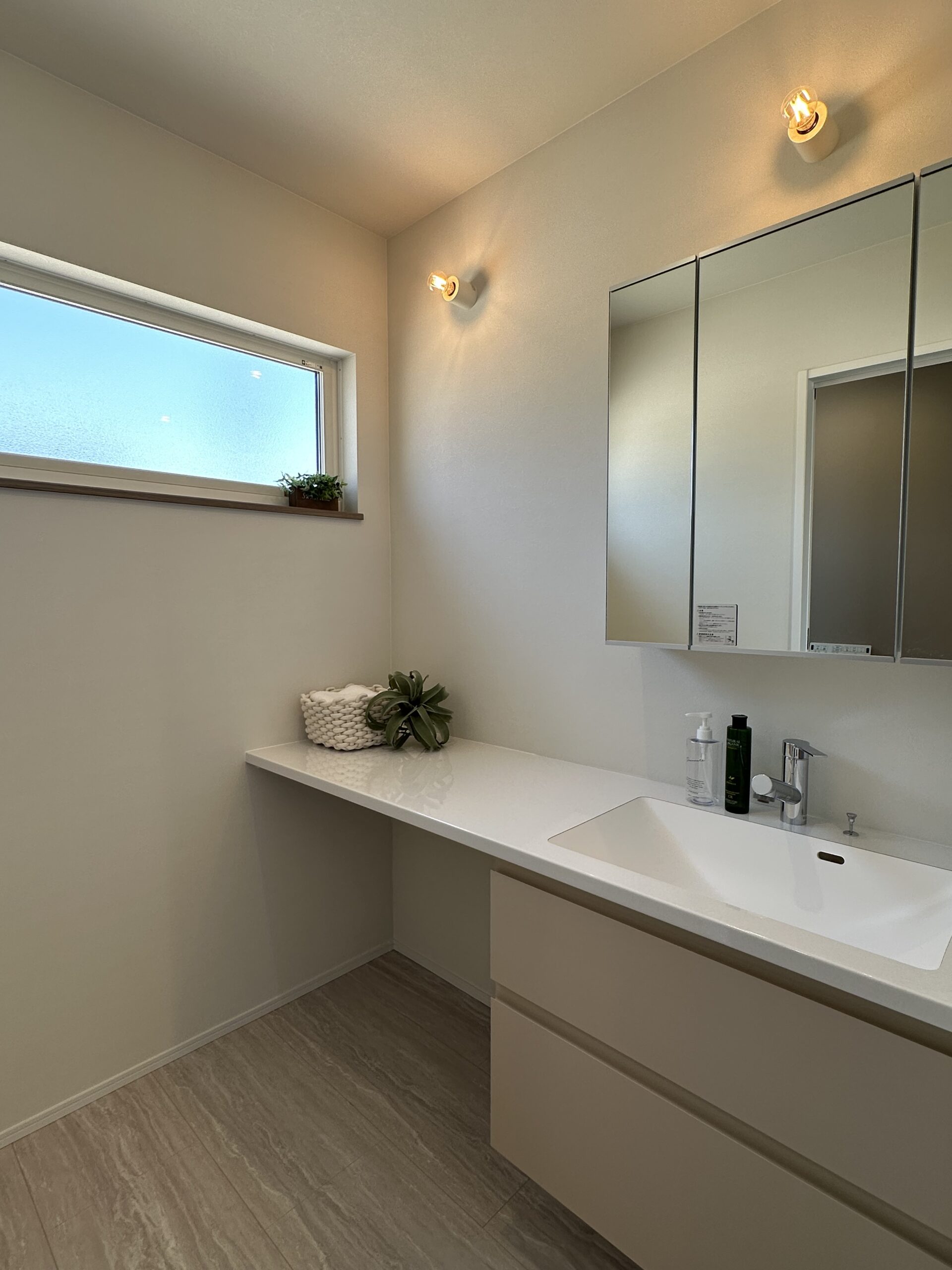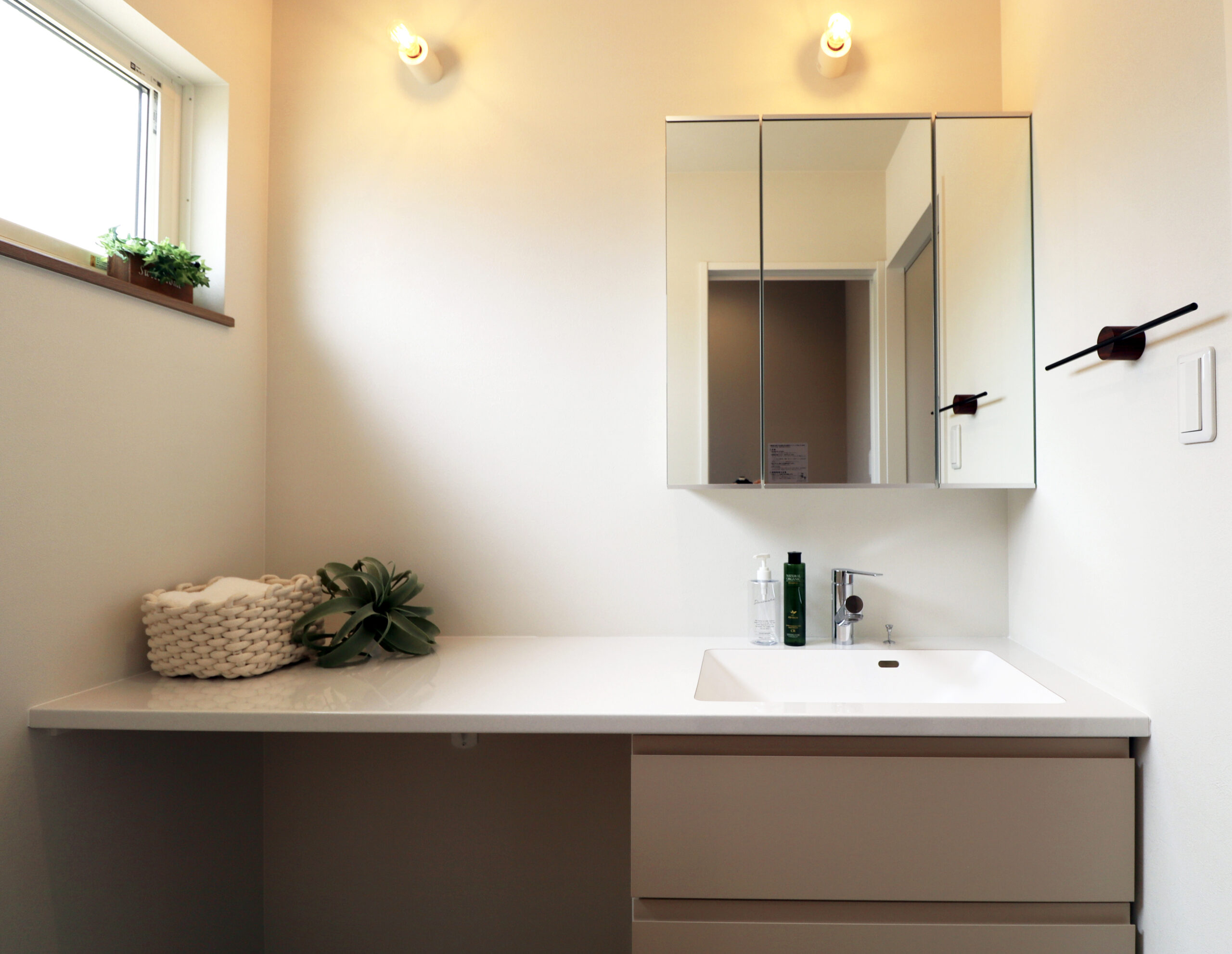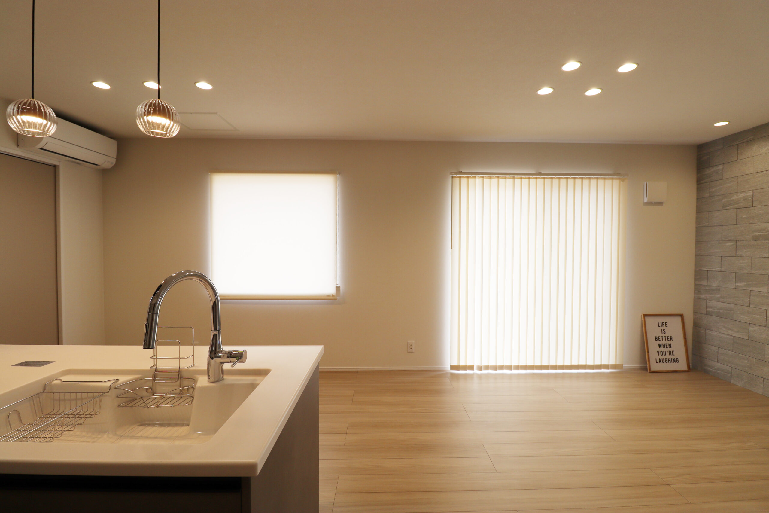キッチン正面には、外の景色を取り込むスクエア窓を設け、