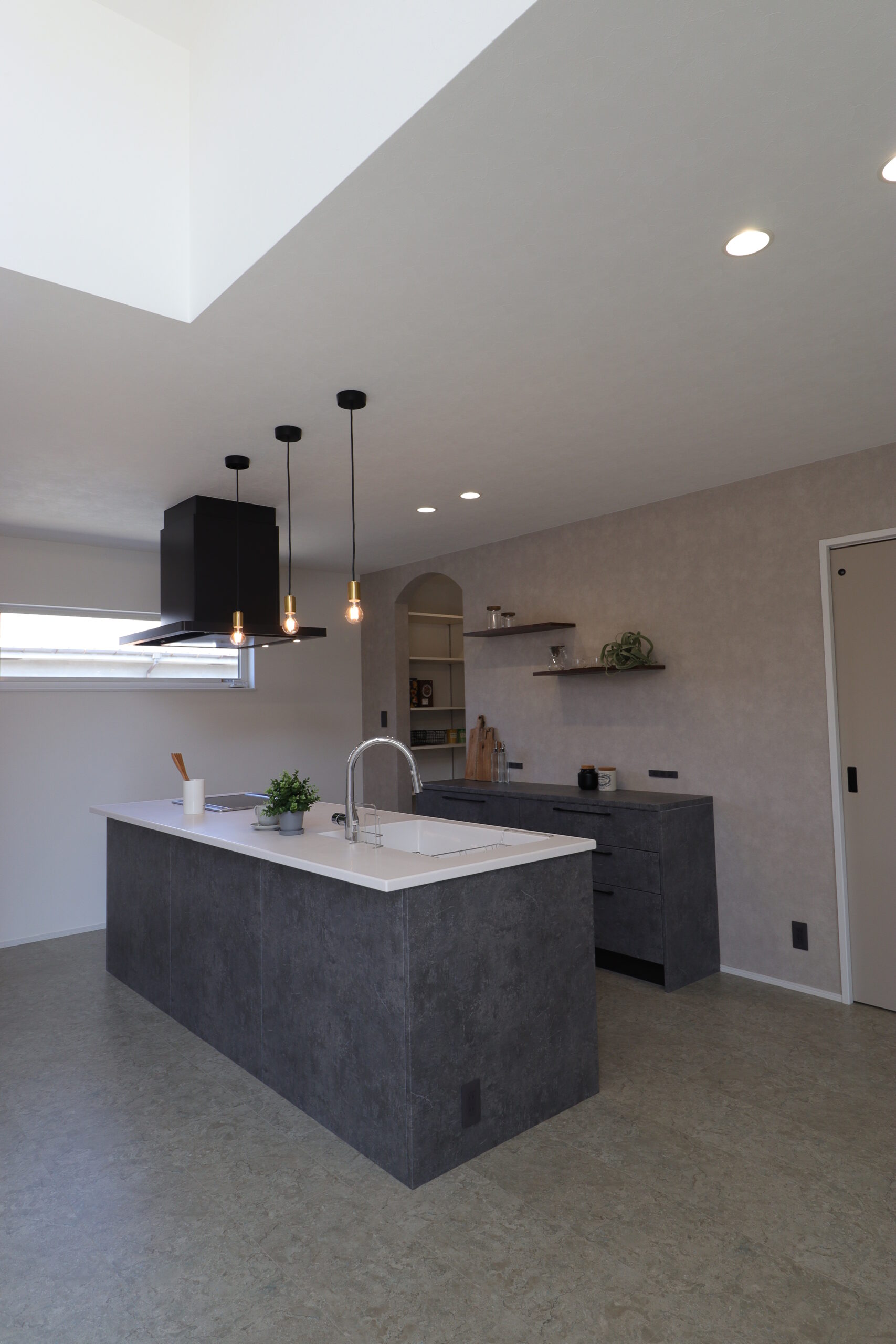 #アイランドキッチン #ホテルライク #シーリングファン #ラグジュアリー #勾配天井